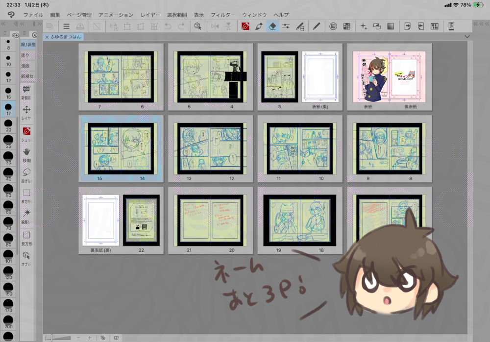 ちょっとした落書きやラフ、未完成のものの供養だったり。原稿の進捗も。